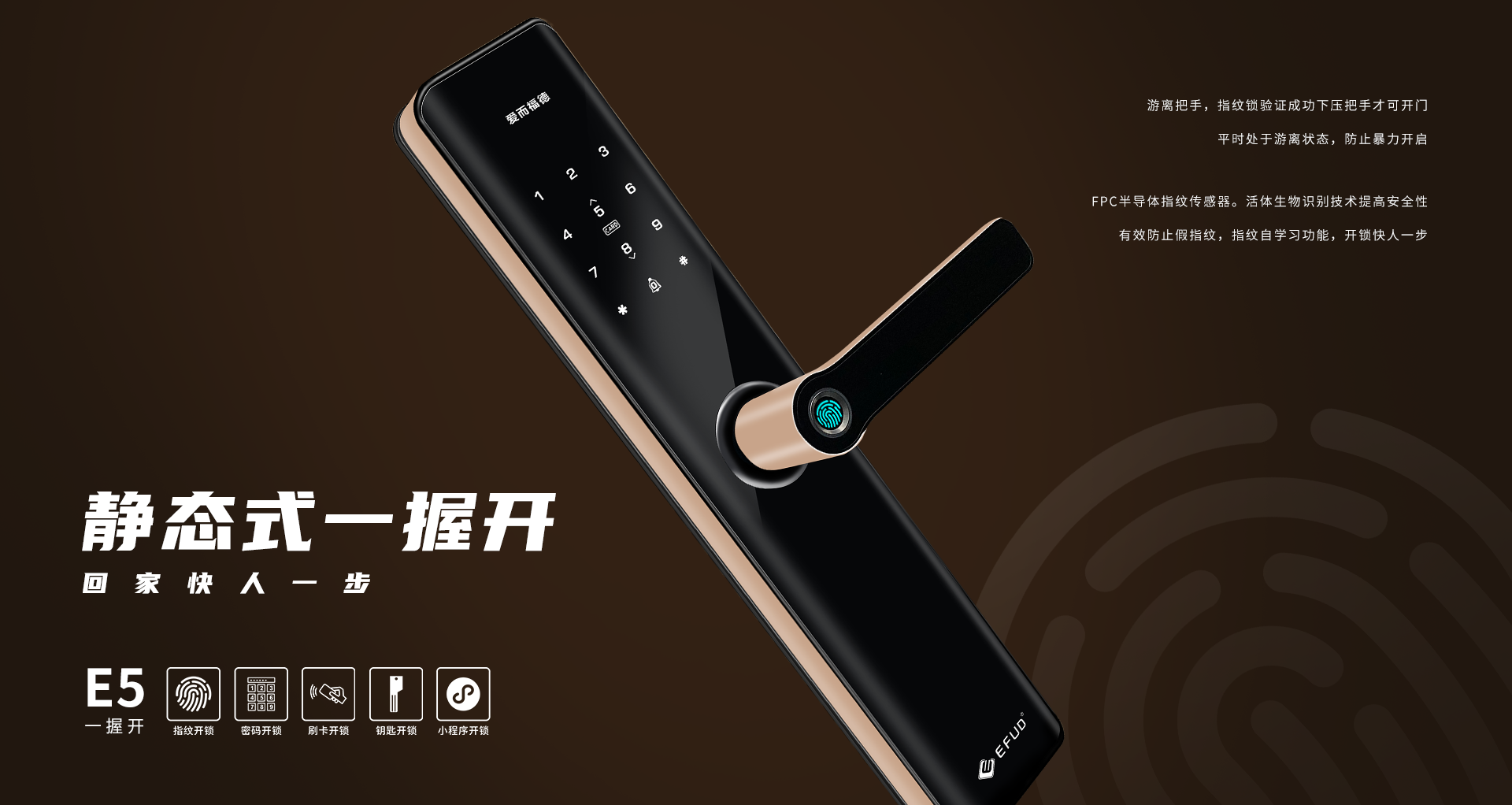 中山市愛而福德電子科技有限公司專注家用智能鎖25年,是一家集產(chǎn)品研發(fā)、制造、銷售、售后于一體全產(chǎn)業(yè)鏈的國(guó)家高新技術(shù)企業(yè)。公司擁有現(xiàn)代化生產(chǎn)基地8500平方米,具備35000把/月的生產(chǎn)規(guī)模及一支十多年專業(yè)的研發(fā)團(tuán)隊(duì),產(chǎn)品均擁有100%自主知識(shí)產(chǎn)權(quán)。公司一直秉承“創(chuàng)新智造,工匠精神”,為每一位用戶提供智能、便捷、安全的高品質(zhì)生活!